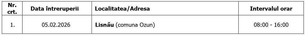 Distribuție Energie Electrică Romania – Sucursala Covasna anunță întreruperea alimentării cu energie electrică