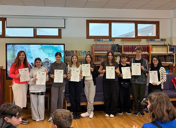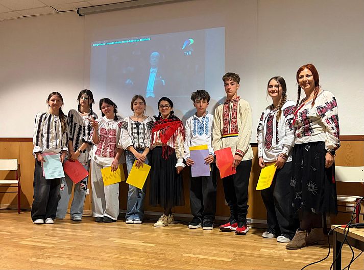 Joi, 19 martie, s-a celebrat poezia în diferite limbi. Am aflat despre tradiții specifice Portugaliei sau ale zonei San Marco in Lamis din Italia, tradiție intitultă La Fracchia, am ascultat poezii în limba portugheză, italiană, engleză și multe lucruri ne-au mângâiat sufletele. După ce elevii noștri au purtat cu demnitate ia națională și au recitat din poezia eminesciană pe un fundal muzical enescian, sub bagheta magică a lui Celibidache, ne-am mai relaxat. După poezie, au luat parte la o lecție de istorie unde li s-a prezentat, într-un mod captivant, informații despre momentul în care Vezuviul a erupt și a acoperit Pompeia. Împărțiți în grupe internaționale, li s-a propus să colaboreze pentru a rezolva un chestionar pe baza informațiilor puse la dispoziție anterior prin intermediul unui film didactic și a unei Gazete (imaginare) a timpurilor de atunci; apoi, tot pe grupe, au construit niște machete ale unor clădiri din acele vremuri. Elevii au participat activ, au fost interesați și vor avea ce povesti când vor ajunge acasă. Un moment de importanță majoră a fost o prezentare în limba engleză, susținută de profesorul universitar Pedro Cortesao Casimiro pe tema schimbărilor climatice. Elevii au intervenit cu întrebări sau cu situații-problemă interesante. Bravo, copii, pentru intervenții! Laboratorul de științe și-a deschis ușa, invitându-i pe copii la adevărate provocări. Și-au descoperit numele scrise inițial invizibil cu un amestec de bicarbonat de sodiu și apă pe niște cartoane folosind o soluție de alcool și turmeric pentru a scoate la iveală cerneala invizibilă. Au fost de-a dreptul impresionați de reacția chimică care descoperă cerneala invizibilă. A urmat apoi un moment de familiarizare cu câteva cuvinte portugheze care sunt pronunțate și în italiană și în română, cuvinte ce desemnează câteva obiecte care sunt apoi observate la microscop. Odată cu manevrarea microscopului pentru o mai bună focalizare elevii, lucrând din nou în echipe internaționale, au exersat, în același timp, și pronunția cu ajutorul colegilor lor de echipă.