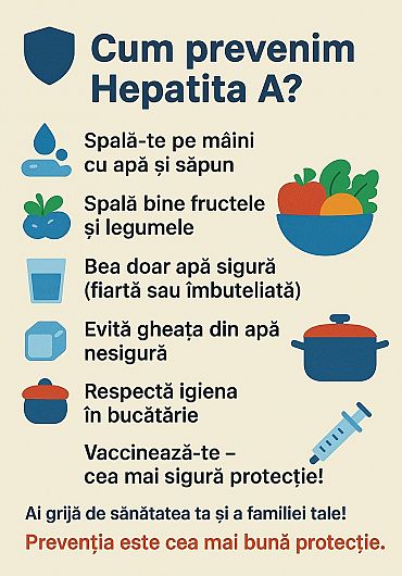 Autoritățile recomandă igienă riguroasă a mâinilor, spălarea fructelor și legumelor, consumul de apă din surse sigure și evitarea consumării gheții din apă de proveniență incertă. Vaccinarea rămâne însă cea mai eficientă protecție.