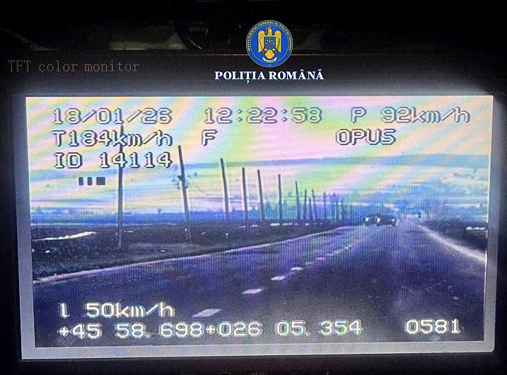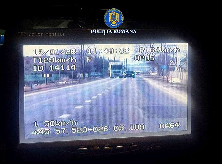 „La data de 18 ianuarie, în jurul orei 07:30, polițiștii au depistat și oprit pe DN 11, un autoturism care rula cu o viteză de 142 km/h, fiind depășită cu 72 km/h limita legală admisă pe sectorul respectiv de drum. Conducătorul auto a fost sancționat contravențional cu amendă în cuantum de 1.822,5 lei, fiind dispusă și reținerea permisului în vederea suspendării exercitării dreptului de a conduce pe drumurile publice pentru 120 de zile”, se arată în comunicatul transmis de IPJ Covasna.