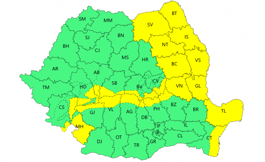 Meteorologii au emis sâmbătă și un Cod galben valabil în intervalul 27 decembrie, ora 10:30 - 27 decembrie, ora 23:00. În Carpații Meridionali și de Curbură vor fi rafale de 60 - 85 km/h, iar la altitudini de peste 1.700 m, rafale de 90 - 110 km/h, viscolind zăpada depusă. Până spre seară, temporar, vântul va avea intensificări și în Moldova, în vestul Olteniei, precum și în nordul și estul Dobrogei, cu viteze de 50 - 70 km/h.
