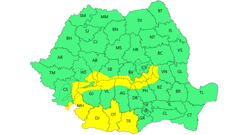 Administrația Națională de Meteorologie (ANM) a emis trei atenționări meteorologice Cod galben de intensificări ale vântului și ninsoare viscolită pentru zone din Oltenia, Muntenia și Transilvania, valabile în ultimele zile ale anului.