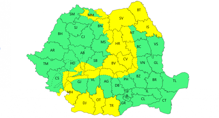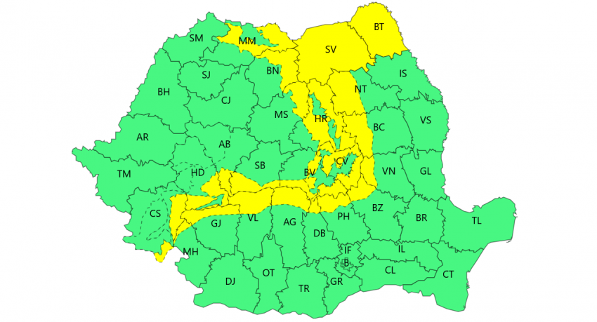 Miercuri, între orele 8:00 și 20:00, în nordul și nord-estul Moldovei, estul și sud-estul Transilvaniei, vor fi intensificări ale vântului cu viteze de 50...70 km/h și va ninge viscolit. Intensificări ale vântului vor fi și în vestul și sudul Olteniei și în sud-vestul Munteniei, cu rafale de 50...70 km/h. În Carpații Meridionali și Orientali vor fi viteze de 60...85 km/h, iar la altitudini de peste 1700 m, rafalele vor atinge 90...120 km/h, ninsoarea va fi viscolită, iar vizibilitatea se va menține scăzută.