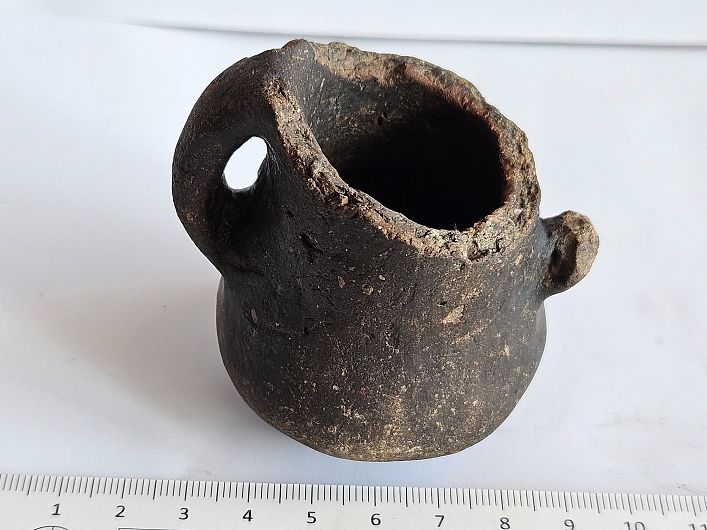 „În campania din anul 2025, principalul obiectiv al cercetării arheologice a fost acela de a documenta un şanţ (Complexul arheologic nr. 15), care a aparţinut unui „Gard interior” asociat probabil cu structurile de locuit amenajate în diferite perioade de ocupare a sitului (...) În acest şanţ, a fost descoperită o groapă formată dintr-o aglomerare de fragmente ceramice provenite de la mai multe categorii de recipiente (oale, castroane, amfore şi amforete) alături de care s-au descoperit resturi de oase animaliere, fragmente mici de lemn ars şi pietre de diferite dimensiuni, toate atribuite culturii Costişa-Ciomortan (cca. 2100 - 1900 î. Hr.). Dintre acestea s-a remarcat o amforetă de mici dimensiuni păstrată foarte bine, are două toarte în bandă (una este ruptă din vechime), gura recipientului este uşor evazată, gâtul cilindric, corpul sferic şi fundul plat”, au precizat reprezentanţii muzeului într-o postare pe Facebook.