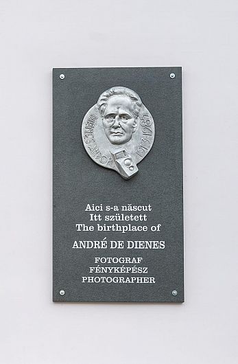 Placă memorială dedicată fotografului Andre de Dienes, care a imortalizat celebre staruri americane
