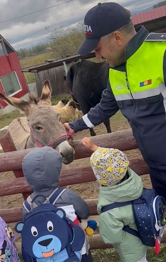 Alături de polițiști și reprezentanții asociației, cei mici au pășit în lumea necuvântătoarelor, unde au avut ocazia să cunoască și să mângâie animalele aflate în grijă, descoperind cât de importantă este empatia și respectul față de acestea.