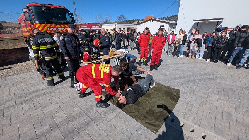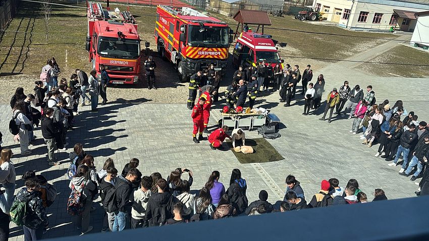 Totodată, pompierii au realizat o demonstrație privind acordarea primului ajutor medical de bază, oferind elevilor informații utile despre modul de reacție în situații de urgență până la sosirea echipajelor specializate.
