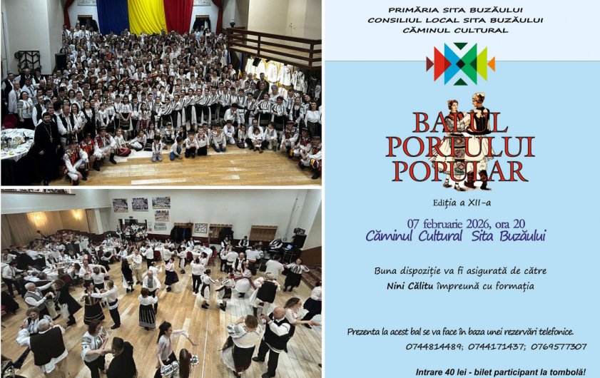 „Este timpul să scoatem din lada de zestre cele mai frumoase straie strămoșești! Sâmbătă, 7 februarie 2026, vă așteptăm cu inima deschisă la o nouă ediție de colecție a Balului Portului Popular din Comuna Sita Buzăului.