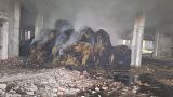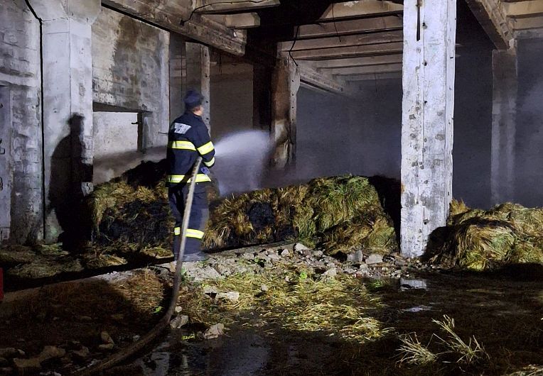 (Update) Zeci de baloți de paie cuprinși de flăcări la o fostă fabrică din Covasna