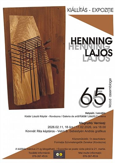 Casa Orășenească de Cultură Covasna anunță deschiderea expoziției retrospective a artistului plastic brașovean Henning Lajos. Evenimentul are loc miercuri, 11 februarie, de la ora 18:00, la Galeria de Artă „Kádár László” și reunește o colecție de sculpturi în lemn.