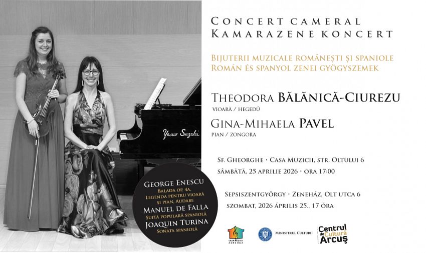 În continuarea vernisajului, publicul este invitat la un recital extraordinar de vioară și pian, intitulat „Bijuterii muzicale românești și spaniole”, susținut de violonista Theodora Bălănică-Ciurezu și pianista Gina-Mihaela Pavel.