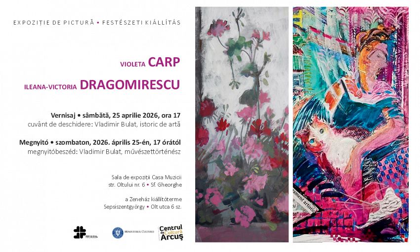 Centrul de Cultură Arcuș invită publicul la o incursiune artistică în universul vizual al pictorițelor Violeta Carp și Ileana Dragomirescu, în cadrul expoziției de pictură deschisă pe parcursul lunilor aprilie-mai.