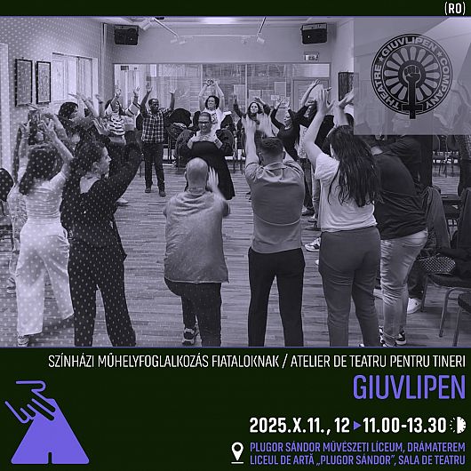 Sâmbătă, 11 octombrie, teatrul independent feminist rom Giuvlipen organizează un atelier teatral dedicat tinerilor sub îndrumarea educatoarelor Kimberly Vintilă și Renata Teodora Cule.