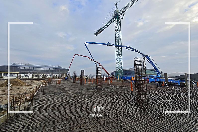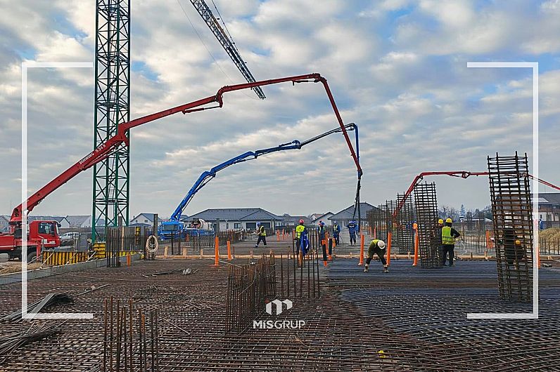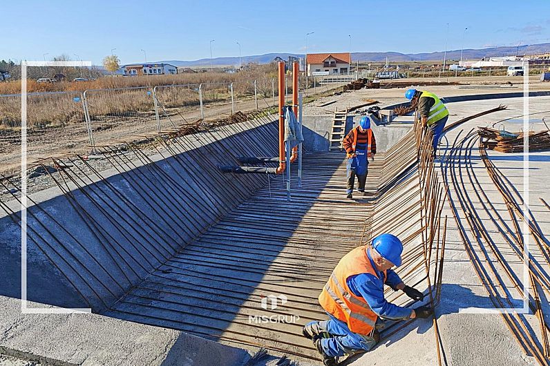 Potrivit constructorului, în prezent se desfăşoară lucrări de cofrare şi armare a radierului general, adică de pregătire şi consolidare a fundaţiei.